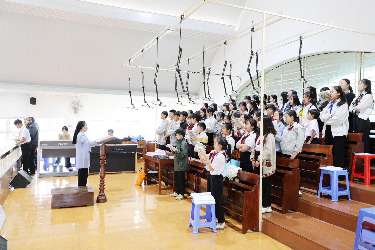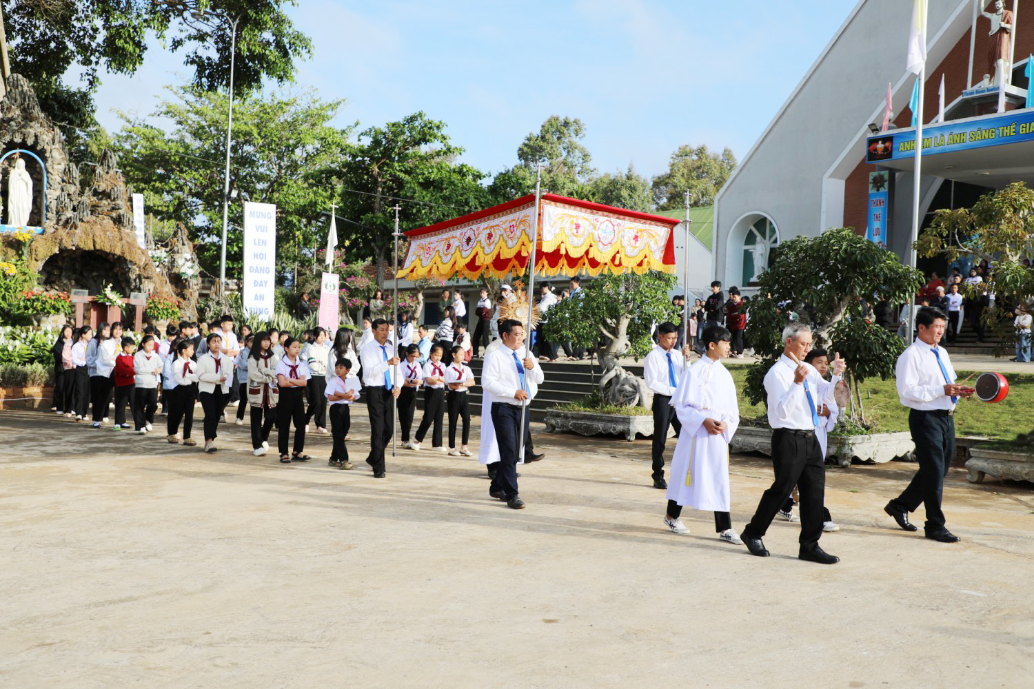 Vào lúc 07h30 sáng Chúa Nhật IV Mùa Chay (15/03/2026), sau Thánh lễ dành cho Thiếu nhi, cộng đoàn Giáo xứ Vinh Hương đã long trọng tổ chức rước kiệu và khai mạc ngày Chầu Thánh Thể thay cho toàn Giáo phận Ban Mê Thuột.
