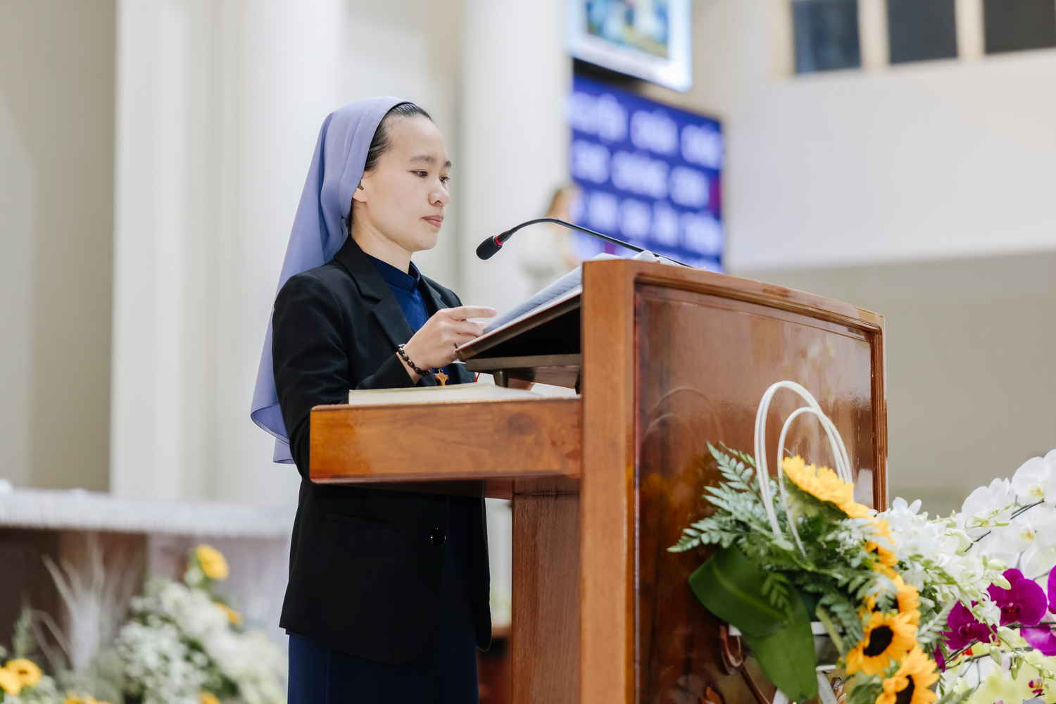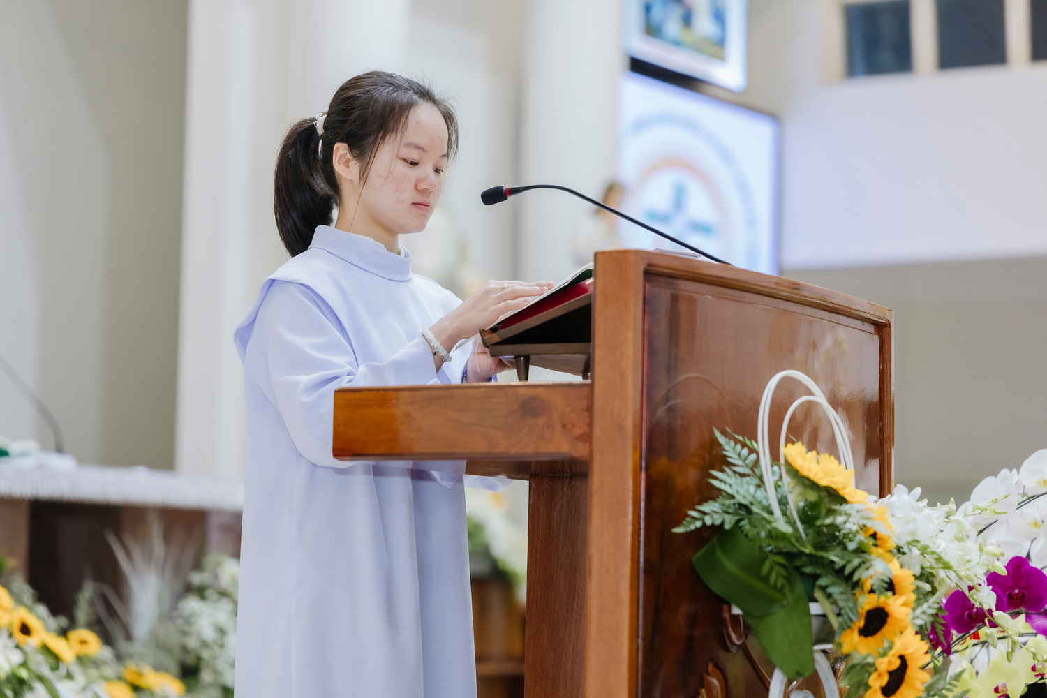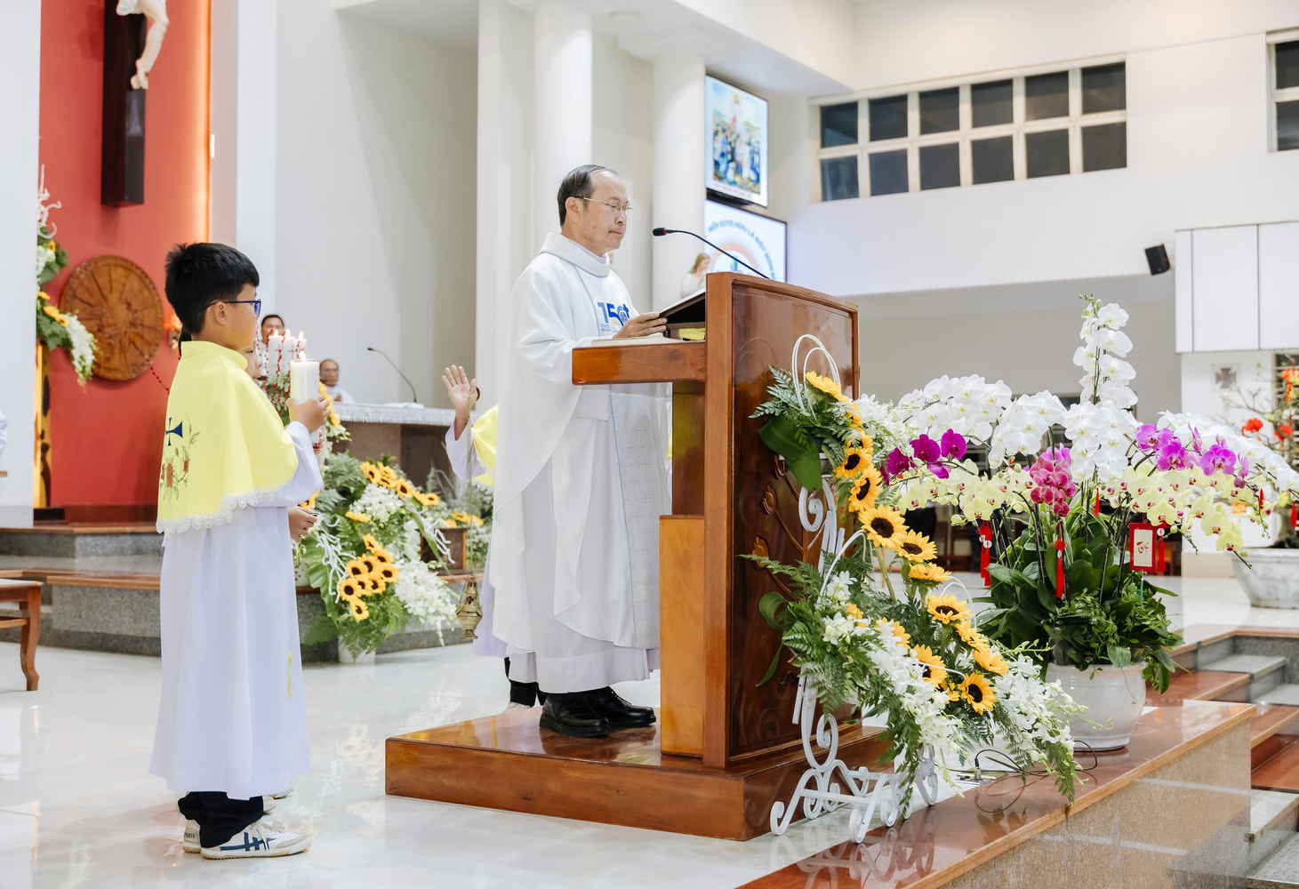 Cuối thánh lễ là lời tri ân của quý Tu sĩ cùng các bạn Học sinh - sinh viên đi làm, đi học xa quê gửi tới Cha Quản xứ cùng cộng đoàn, tri ân công dưỡng dục của các đấng sinh thành đã nuôi dạy nên người.