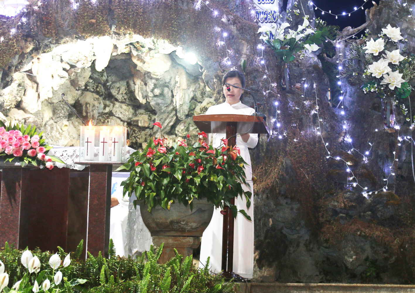 Sau khi nhận phép lành cuối lễ, quý đại diện Hội Hiền Mẫu đã dâng lên Mẹ những bông hoa tươi thắm và cùng cộng đoàn dâng lên Mẹ lời kinh Đức Mẹ Lộ Đức.