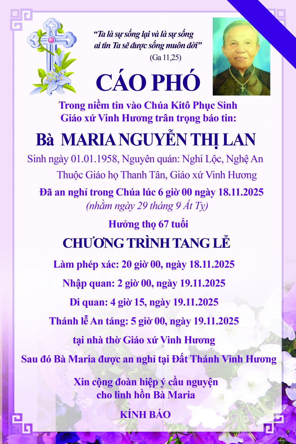 CÁO PHÓ: Bà Maria Nguyễn Thị Lan "10/2025"