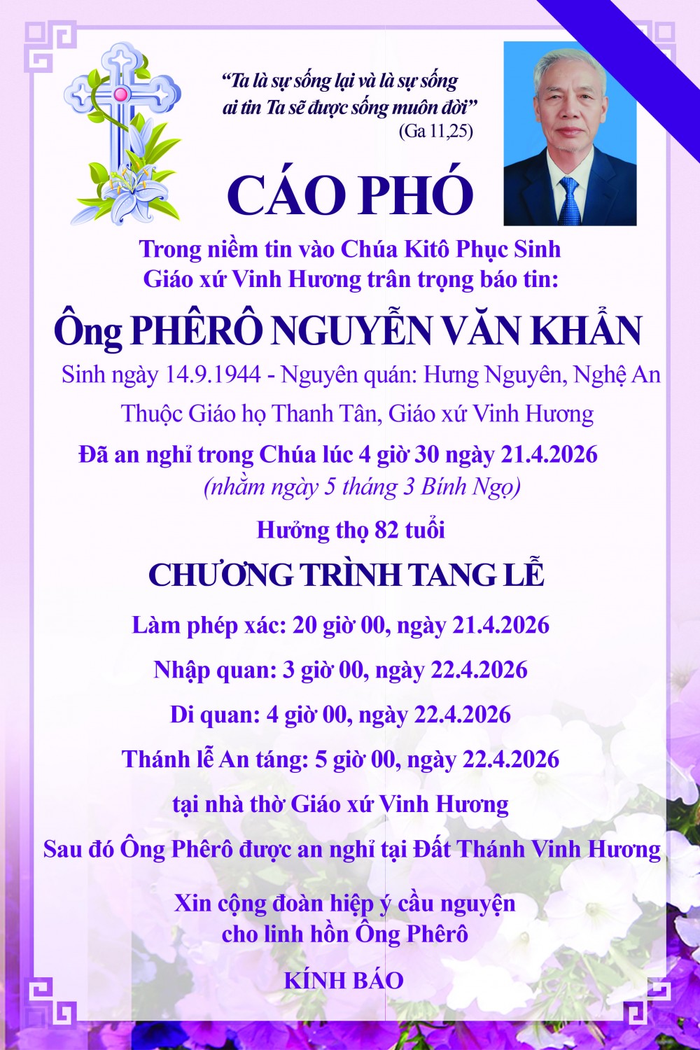 CÁO PHÓ: ÔNG PHÊRÔ NGUYỄN VĂN KHẨN "07/2026"