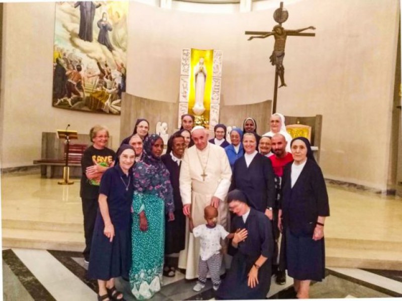 Các chị em cộng đoàn Nữ tử Bác ái của Nhà Regina Mundi ở Rôma ngạc nhiên tiếp một vị khách ngoại hạng: Đức Phanxicô....