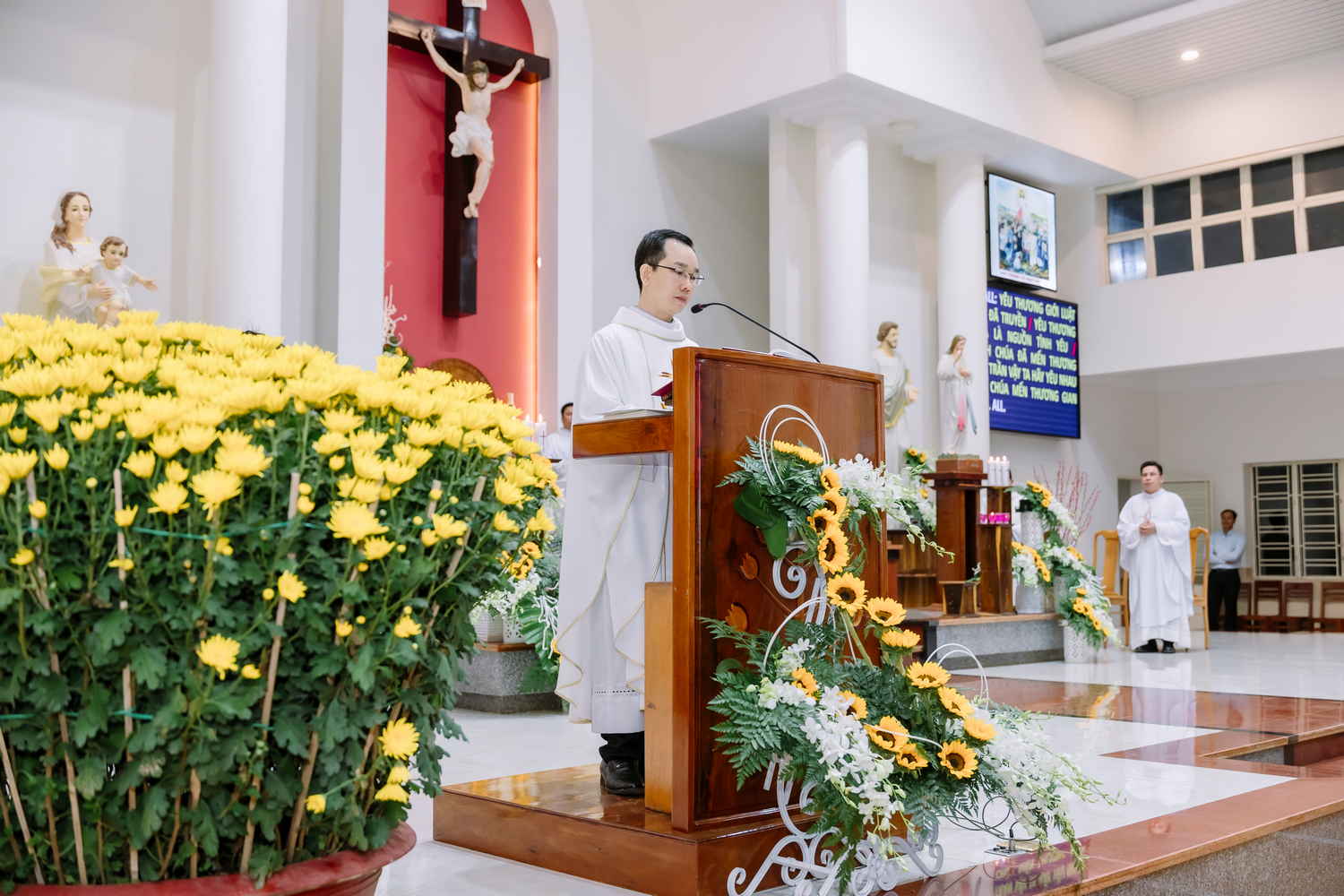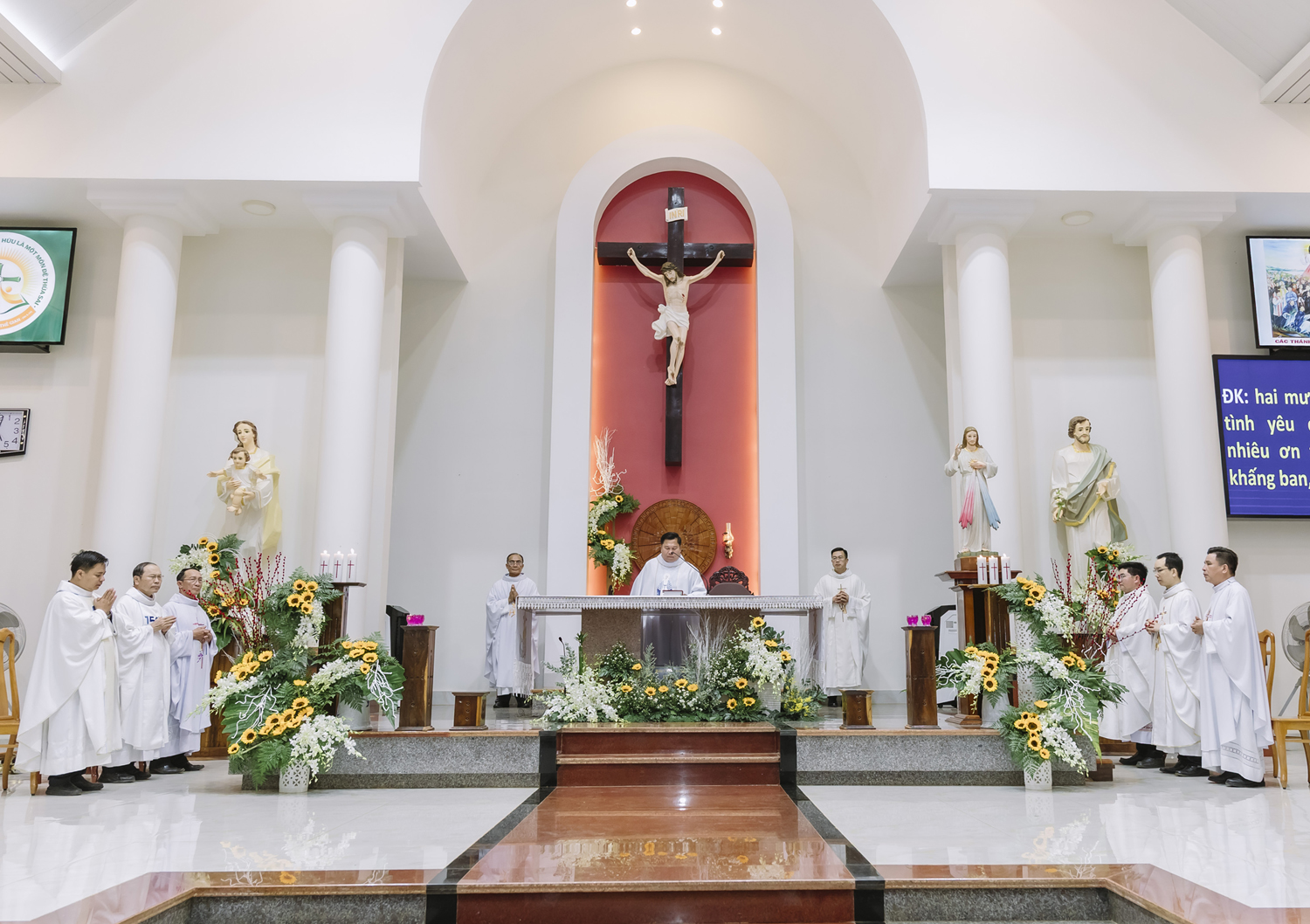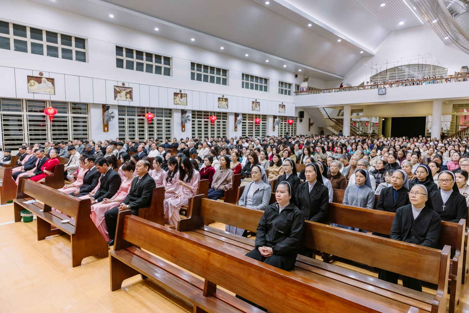 Thánh lễ do Cha Quản xứ Gioan Baotixita Trần Vinh chủ tế tại Nhà thờ Giáo xứ Vinh Hương vào lúc 5 giờ 00, ngày 14.02.2026. Cùng đồng tế có 8 linh mục là những người con của quê hương. Hiện diện để cùng dâng lời tạ ơn với các gia đình kỷ niệm hôm nay có quý Sơ, quý Thầy, quý Chức, đông đảo thân nhân và cộng đoàn phụng vụ.