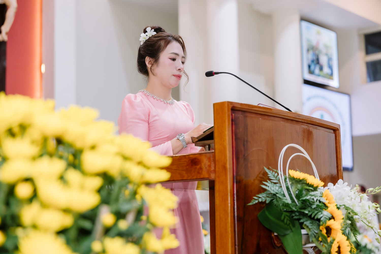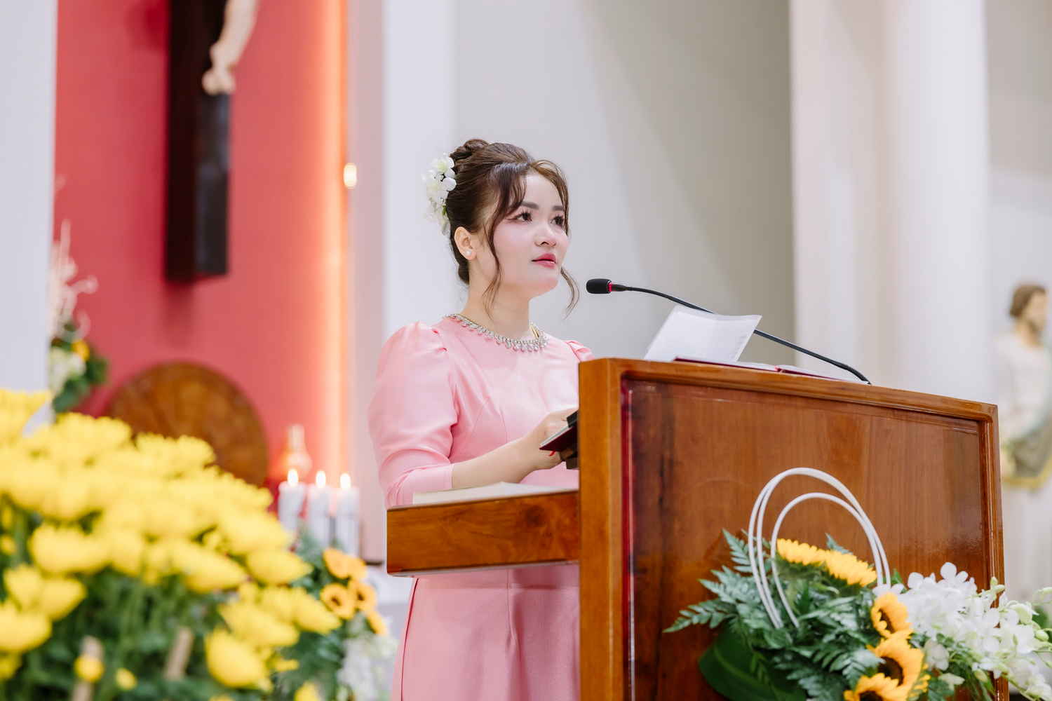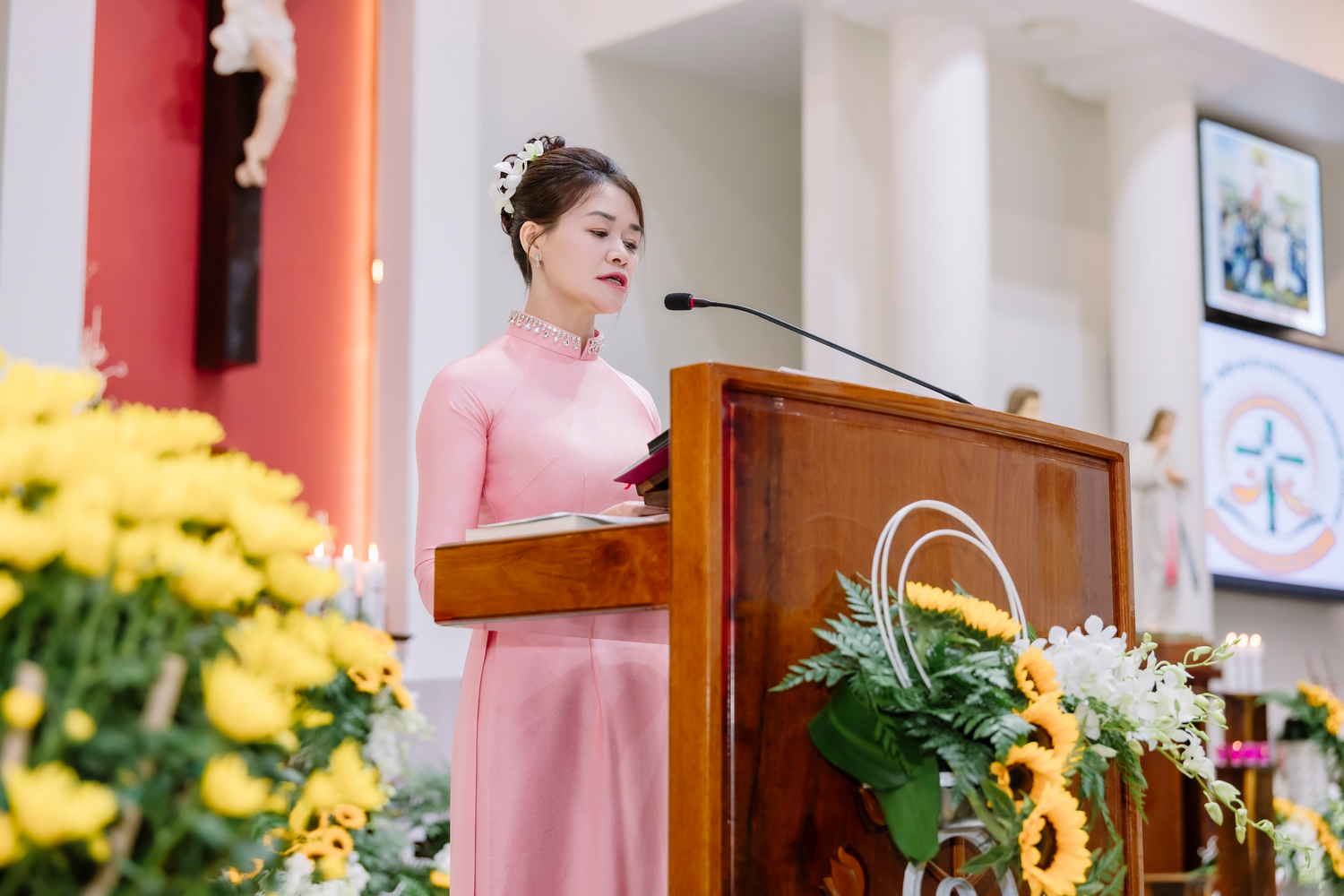 “Hôm nay, trước nhan Thánh Chúa, các đôi hôn phối hân hoan dâng lên lời tri ân cảm tạ, vì muôn ơn lành Chúa đã tuôn đổ suốt hành trình hôn nhân; đồng thời tha thiết nài xin ơn bền đỗ, xin Chúa tiếp tục chúc lành, ban cho họ sức khỏe dồi dào, sự hiệp nhất bền chặt, lòng cảm thông và tình yêu ngày càng được thanh luyện, thăng hoa theo năm tháng…”