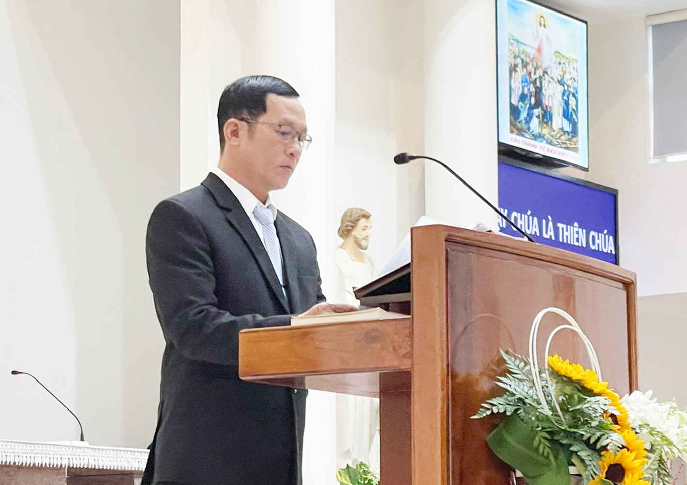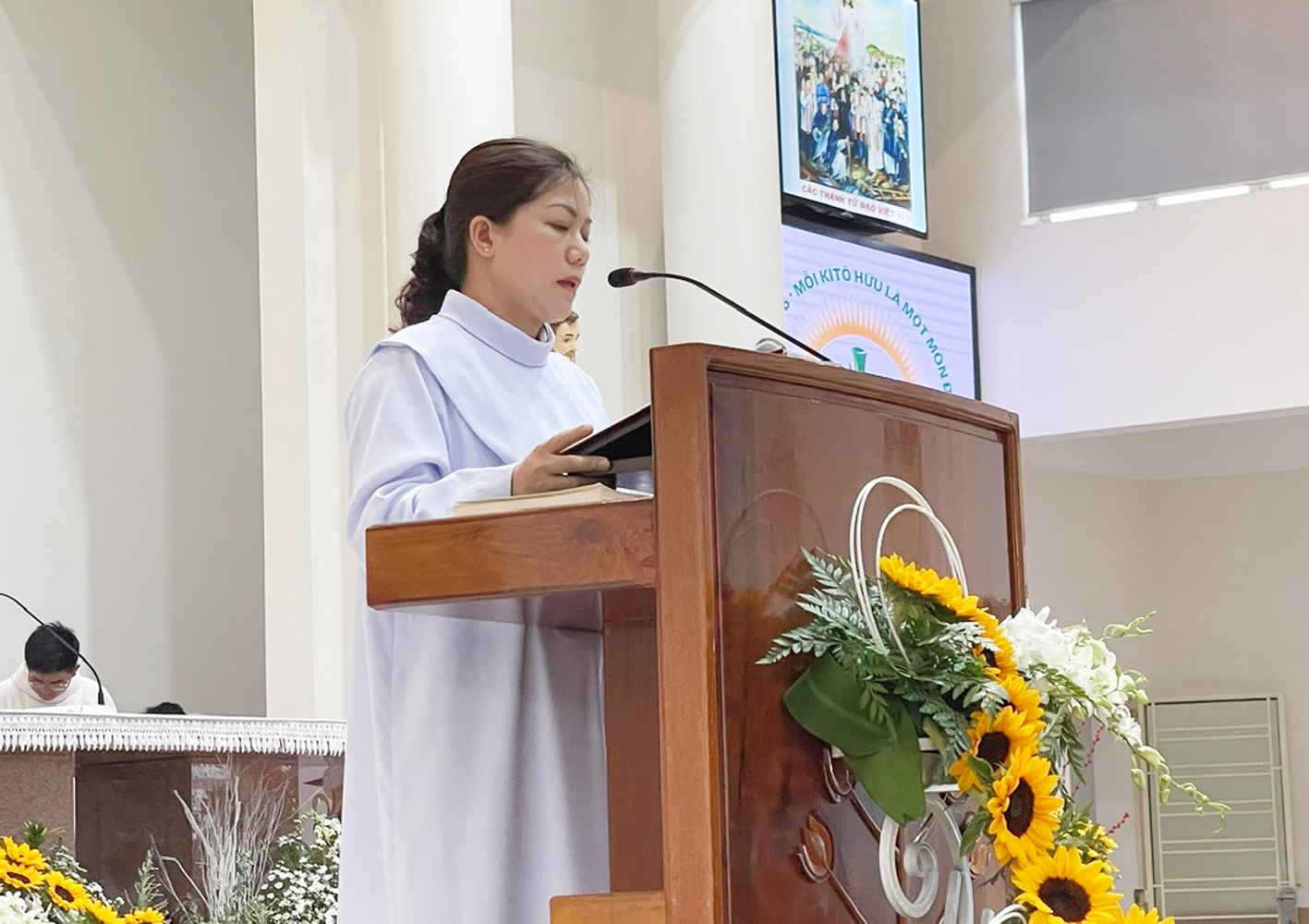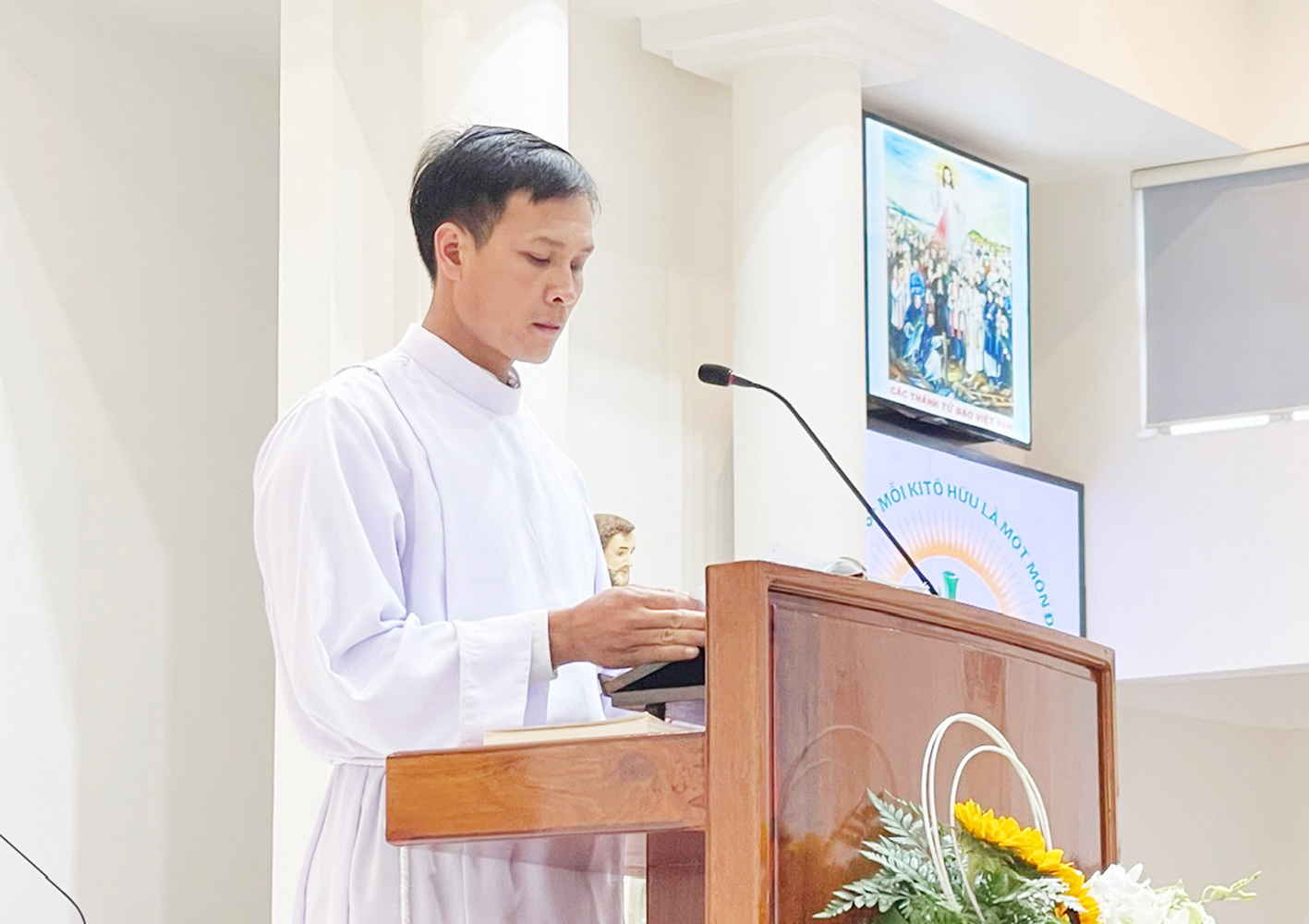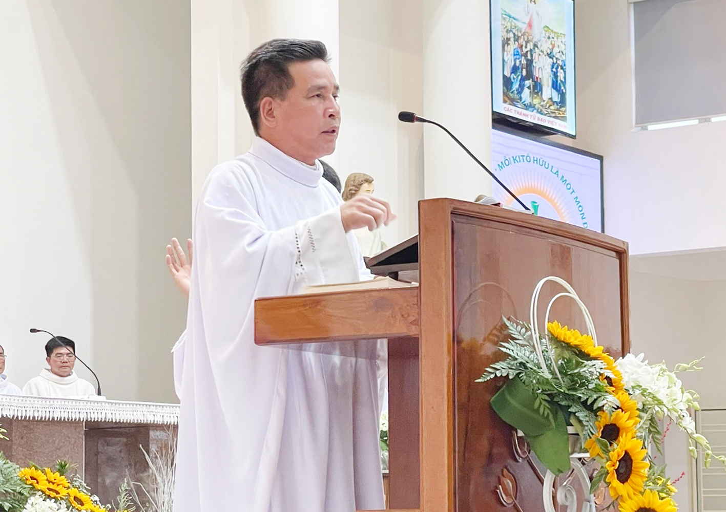 Chia sẻ sau bài Tin Mừng, Cha Giuse Đào Thành Khang, SVD giúp cộng đoàn nhận ra rằng tạ ơn là điều phải làm trong mọi hoàn cảnh. Với những gia đình được làm ăn phát đạt, công việc thuận lợi, con cái học hành đỗ đạt, thì việc dâng lời tạ ơn Chúa là điều tự nhiên. Đồng thời, mỗi người được mời gọi biết cho đi, biết sẻ chia với những mảnh đời bất hạnh và quảng đại đóng góp để xây dựng nhà Chúa.