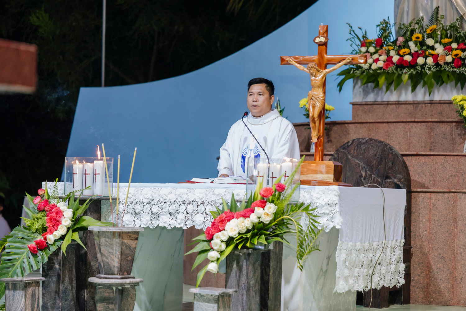 Trong phần chia sẻ lời Chúa, Cha Quản xứ đã nhấn mạnh vai trò cao cả của Thánh Cả Giuse trong chương trình cứu độ. Cha nhắn nhủ rằng khi đón nhận tin vui Đức Maria thụ thai bởi phép Chúa Thánh Thần, Thánh Giuse đã chọn sự vâng phục và tin tưởng tuyệt đối vào kế hoạch của Thiên Chúa. Ngài không nói nhiều bằng lời nhưng đã khẳng định đức tin bằng hành động. Sự thầm lặng ấy không phải là sự thụ động, mà là sự lắng nghe sâu thẳm để thực thi thánh ý Chúa. Chính sự khiêm nhường và lòng trung tín đó đã trở thành mẫu gương rạng ngời cho mỗi người cha, người chồng trong gia đình hôm nay.