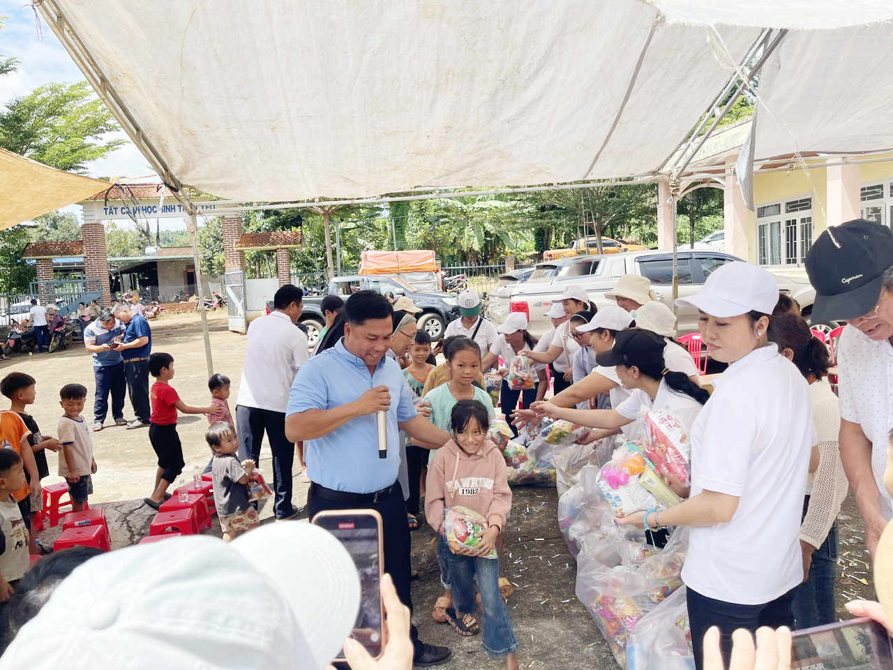 Ngày 05.10.2025: Trao 500 phần quà cho Trường Tiểu học Phan Đình Phùng và Trường Mẫu giáo Măng Non, Đăkrót, cùng 140 phần quà cho các em nhỏ tại Làng Dao, Đức Bình.