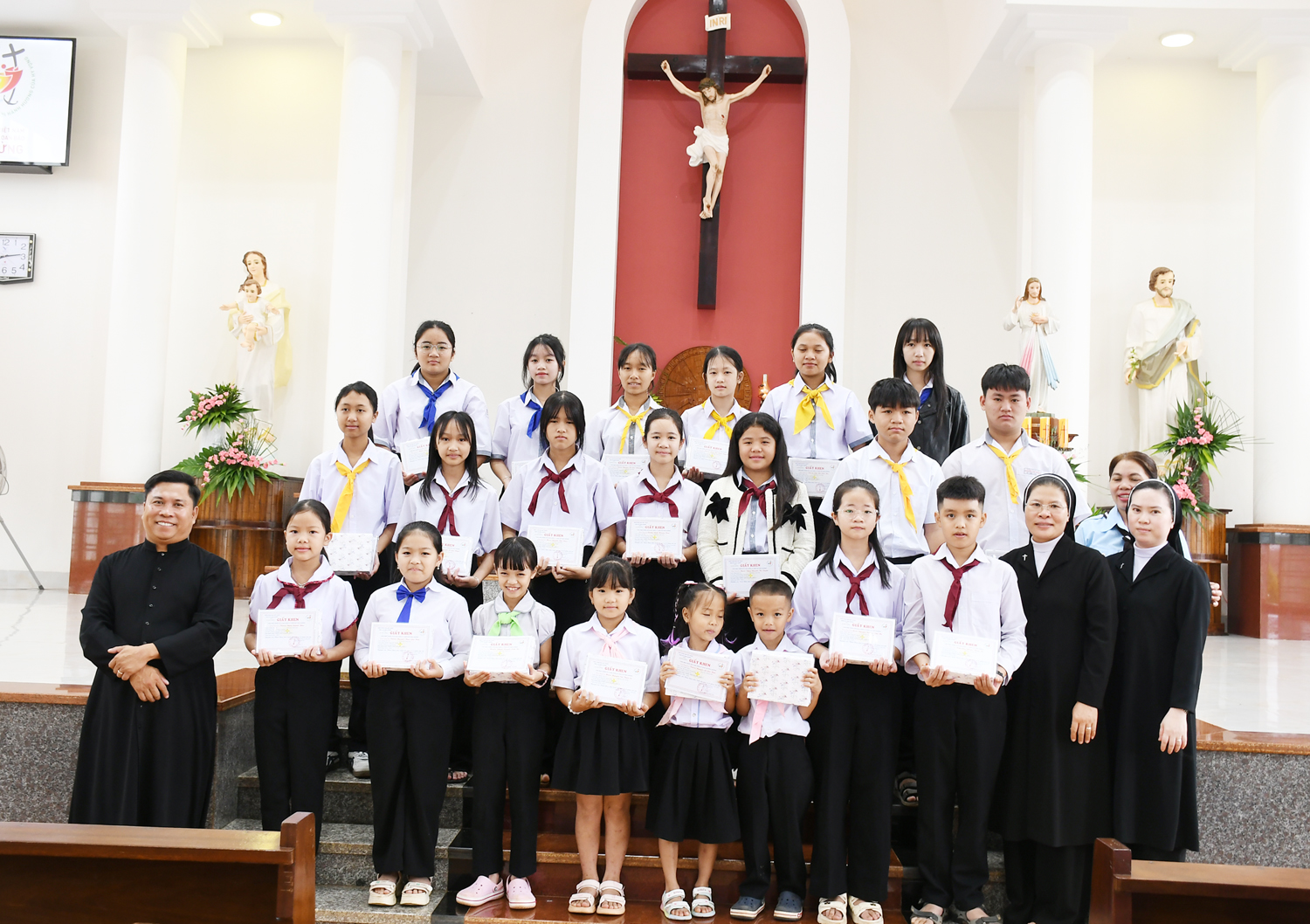 Trong năm học cũ, có 76 em được tuyên dương là gương mẫu, tích cực trong học tập và sinh hoạt. Buổi tổng kết cũng là dịp cùng nhau tạ ơn Chúa vì một năm học trôi qua với nhiều kết quả tốt đẹp và những phần thưởng xứng đáng dành cho các em.